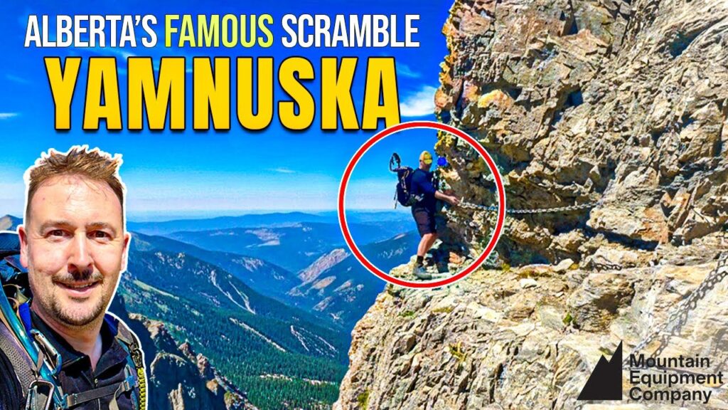 Mount Yamnuska scramble guide covering the challenging route with chain climbing, scree sections, and essential safety tips for this iconic Alberta peak near Calgary.
