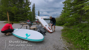 For this part of the adventure, I had the opportunity to use equipment provided by Thurso Surf, who sponsored this video by sending us some paddleboards to try out. The boards performed excellently on the calm waters of Shunda Lake, making it easy to explore the shoreline and enjoy the peaceful afternoon on the water.